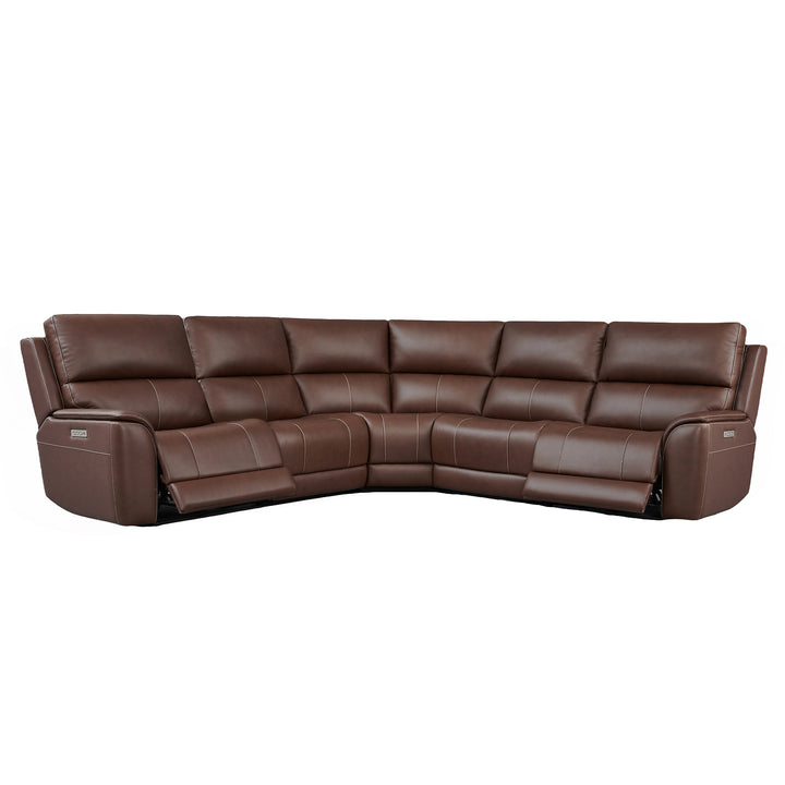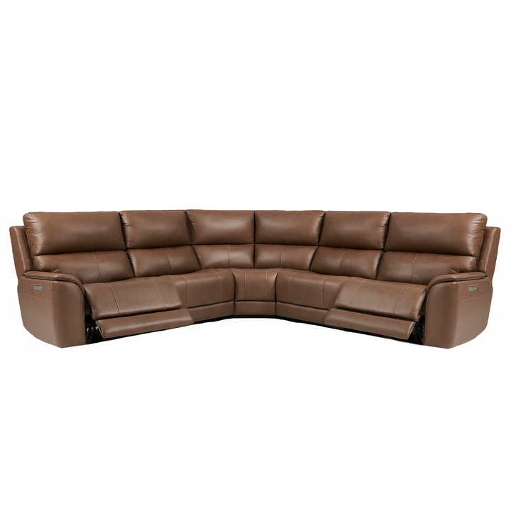 5 PCS, 2 Power Recliners Espoo Leather Sectional | Power Headrest | Lumbar | Double Width