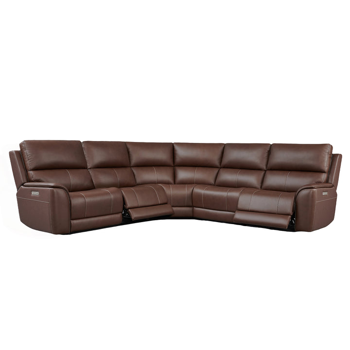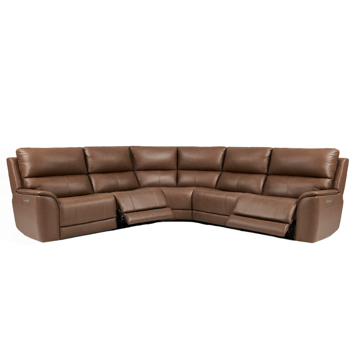 5 PCS, 3 Power Recliners Espoo Leather Sectional | Power Headrest | Lumbar | Double Width
