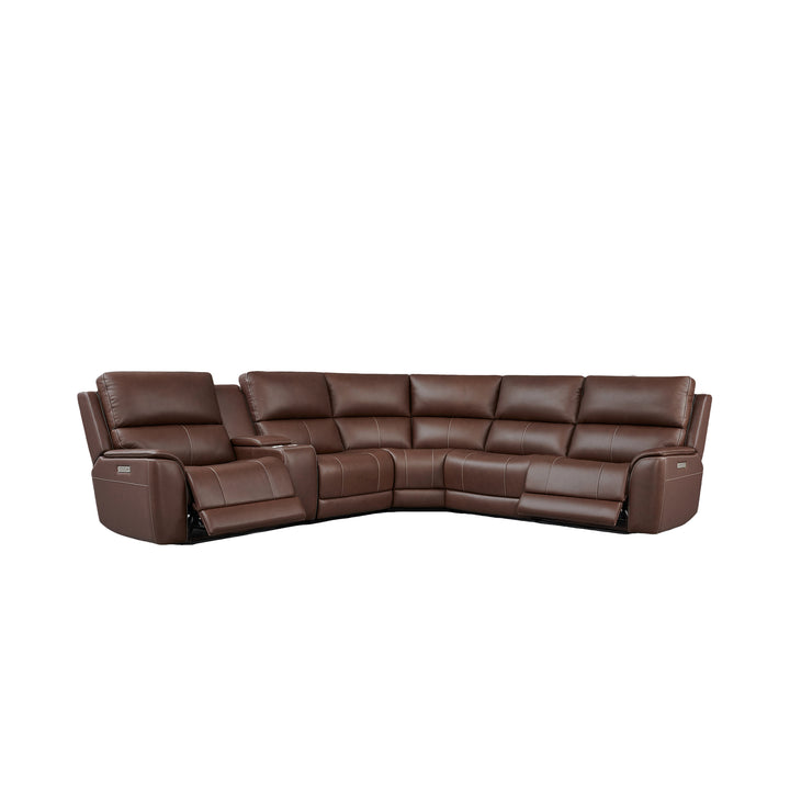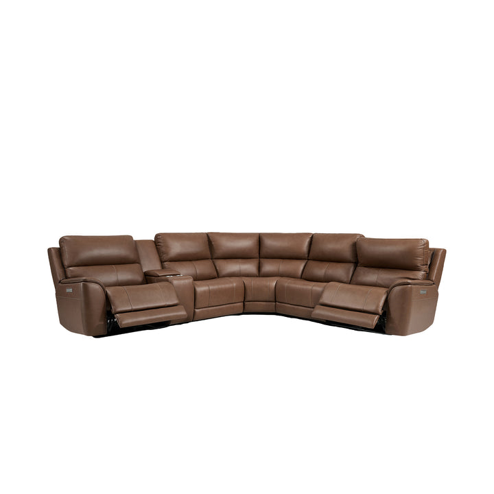 6 PCS, 2 Power Recliners Espoo Leather Sectional | Power Headrest | Lumbar | Double Width
