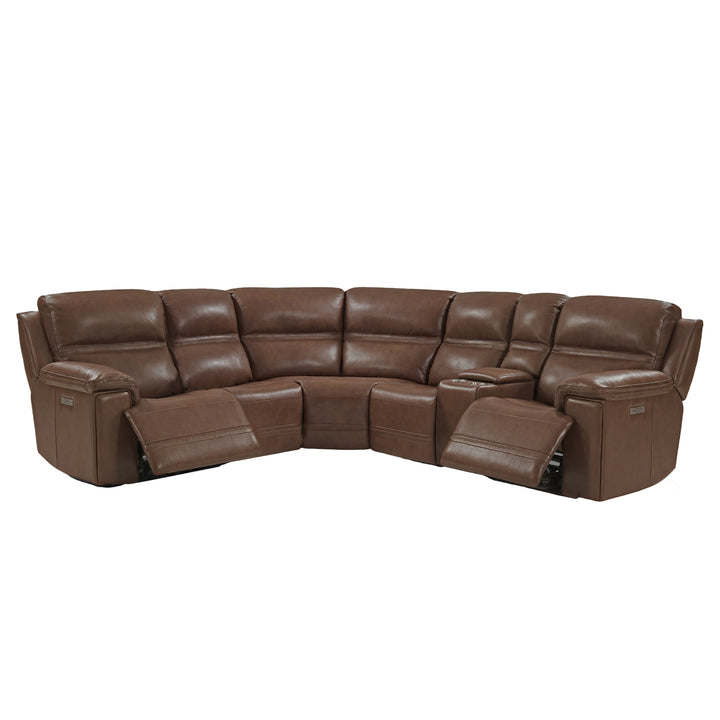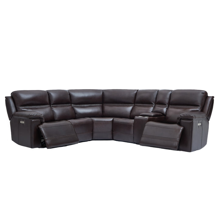 6 PCS, 2 Power Recliners Odense Leather Sectional | Power Headrest