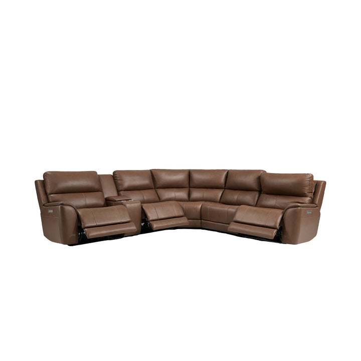 6 PCS, 3 Power Recliners Espoo Leather Sectional | Power Headrest | Lumbar | Double Width