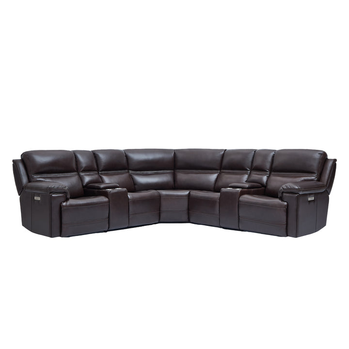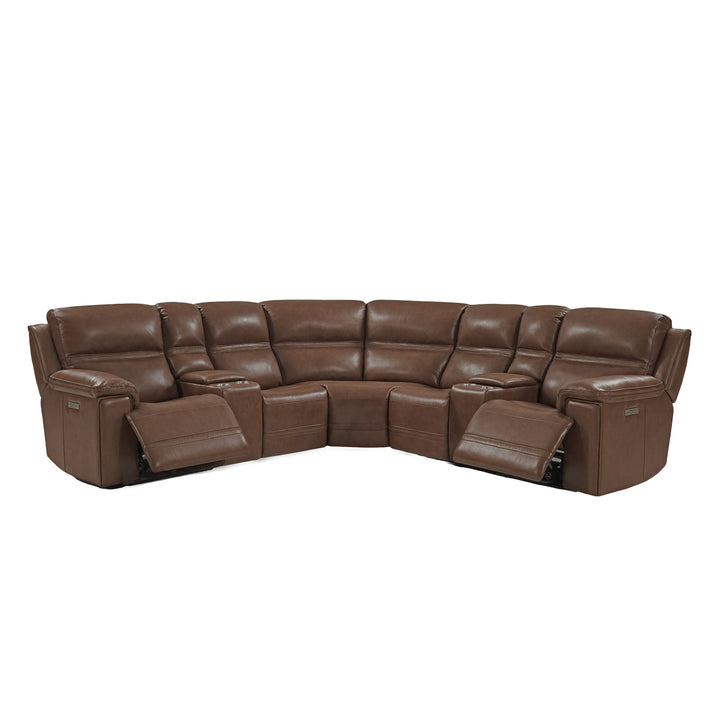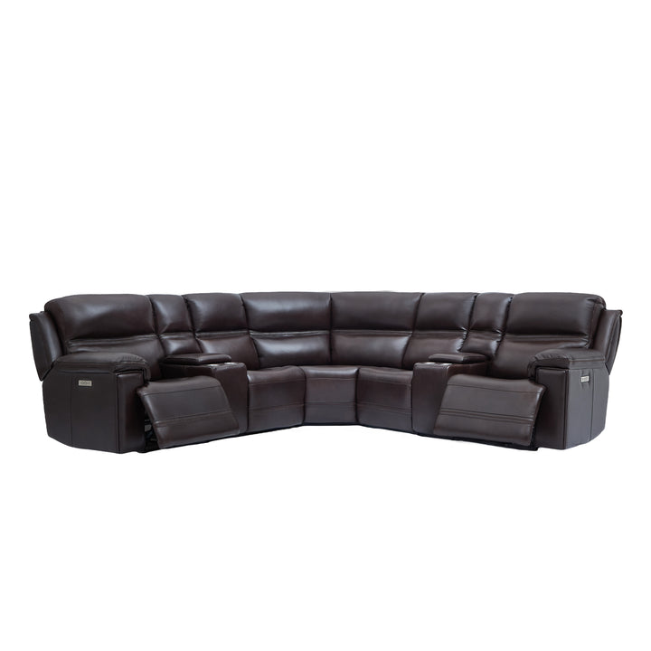 7 PCS, 2 Power Recliners Odense Leather Sectional | Power Headrest