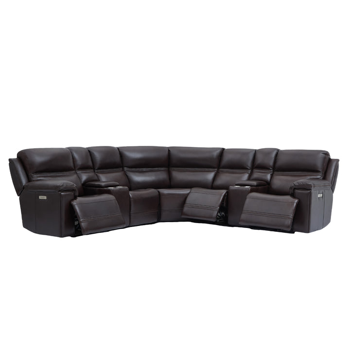 7 PCS, 3 Power Recliners Odense Leather Sectional | Power Headrest