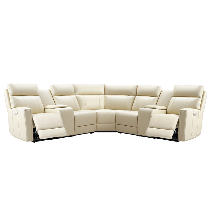 7 PCS, 2 Power Recliners Alesund Leather Sectional | Power Headrest