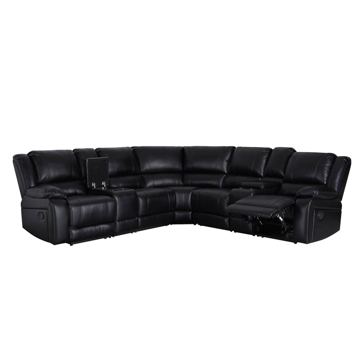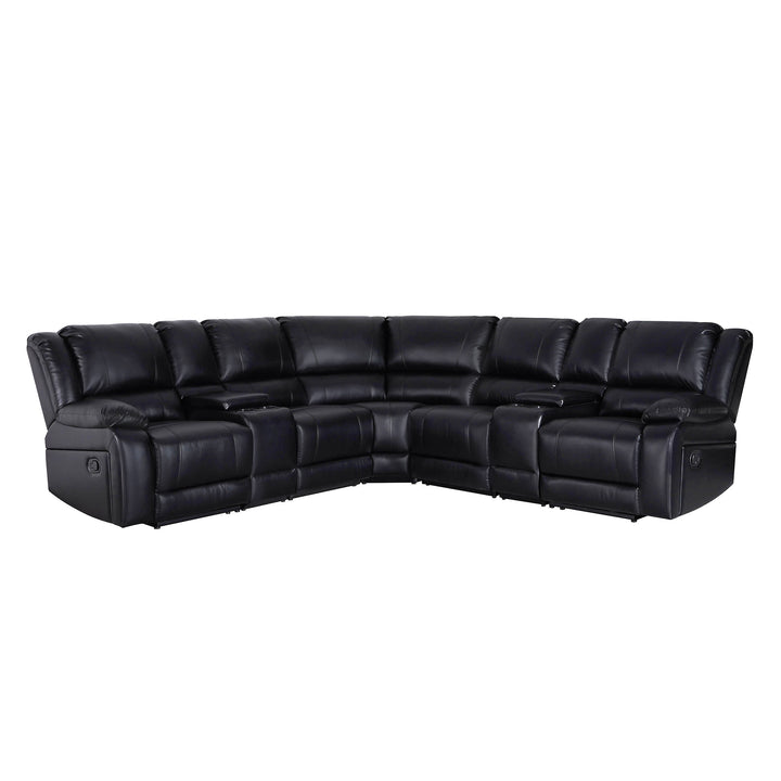 Oslo Manual Black Reclining Sectional Sofa with Consoles & Cup Holders